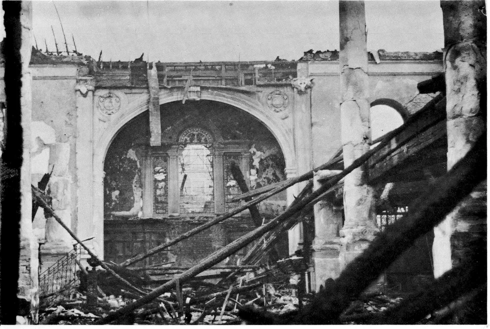 Interior 4th January 1941 after destruction by fire. Note the eagle lectern in rubble. The eagle was remounted and is still in use today.