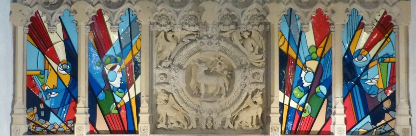 On Friday 21 January, 2011, the work of Saint Stephen’s artist-in-residence, Graeme Mortimer Evelyn was unveiled in Bristol’s parish church. A first for the Heritage Lottery Fund, the Bristol Reconciliation Reredos is set to become an universal symbol of hope and a destination for international visitors. A contemporary artwork, its four relief panels are carved from MDF, painted in bold primary colours, and fitted into the recently-restored stonework. Extraordinarily, the carved lamb of God reredos (behind the altar) had been covered up since the 1870s. Saint Stephen’s was the harbourside church during the slavery era. The Bristol Reconciliation Reredos seeks to respond to this complex legacy inspired by themes of hope and healing.