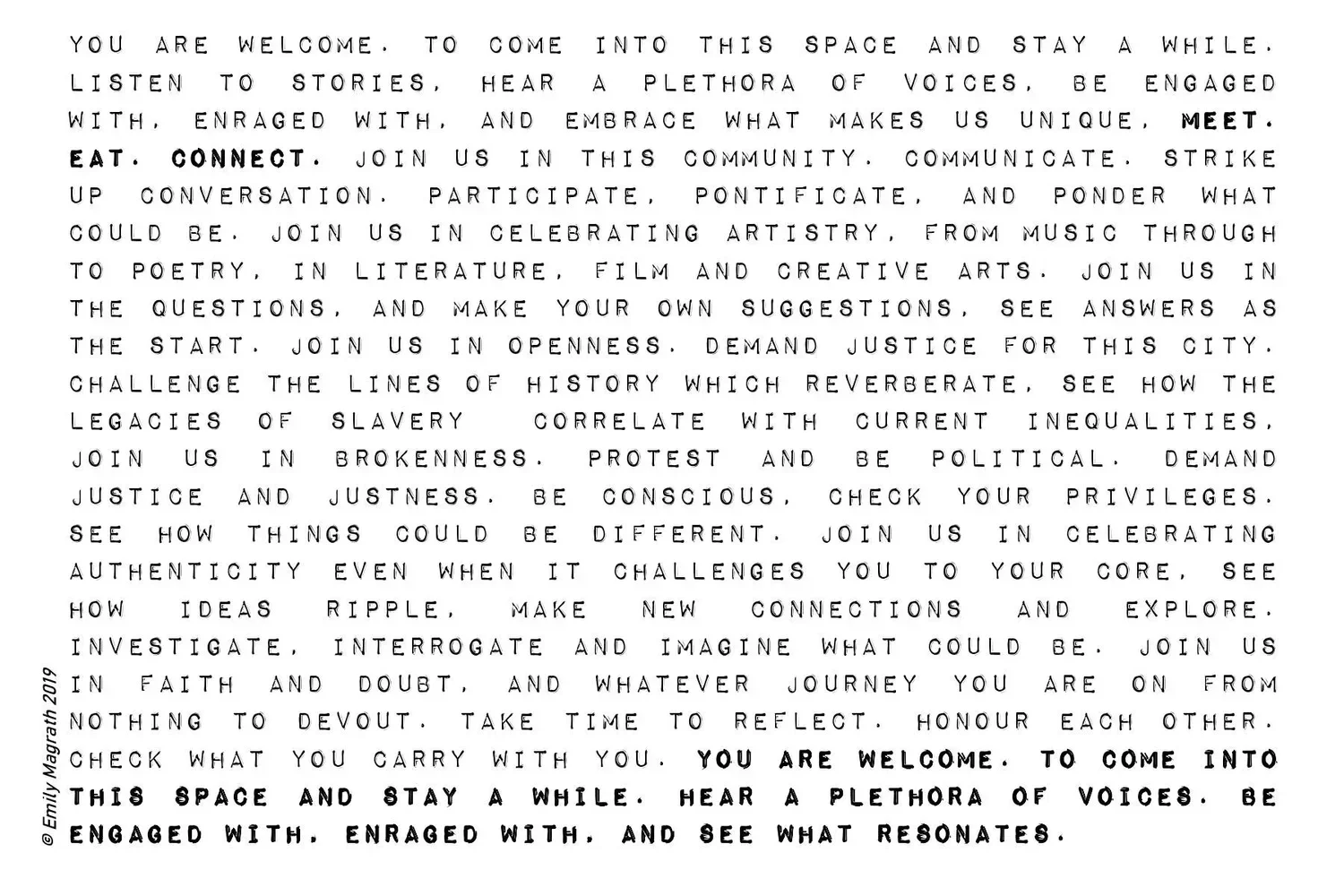 Resonate is a space to explore life, faith, social justice, creativity and ideas (sometimes together, sometimes separately). Our evenings can look different each time from a speaker or panel, to a night of poetry, creative conversations about the influences of music, literature or art on someone's life, our winter Cider and Carols night, or our summer BBQ (that is just a flavour!). Held on the 1st Tuesday of the month. Join us from 7.30pm for mingling and food (soup & bread), talks start at 8 to finish at 9. All welcome.
